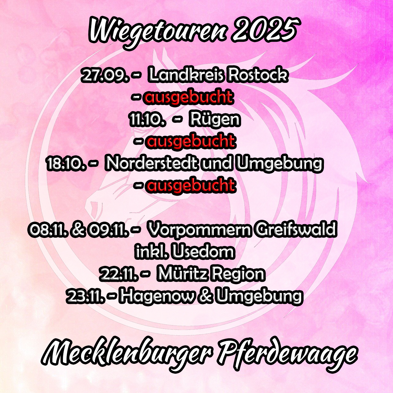 Anmeldungen über unser Kontaktforumular, per Mail (info@mecklenburger-pferdewaage) oder auch per WhatsApp (0151 68 44 98 85)